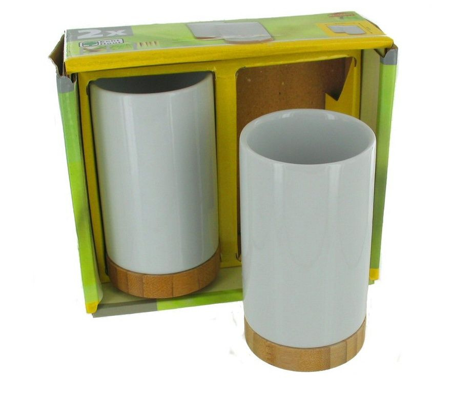 massief bamboe houten voet. Geschikt voor gebruik in de badkamer als drinkbeker of om tandenborstels in te zetten