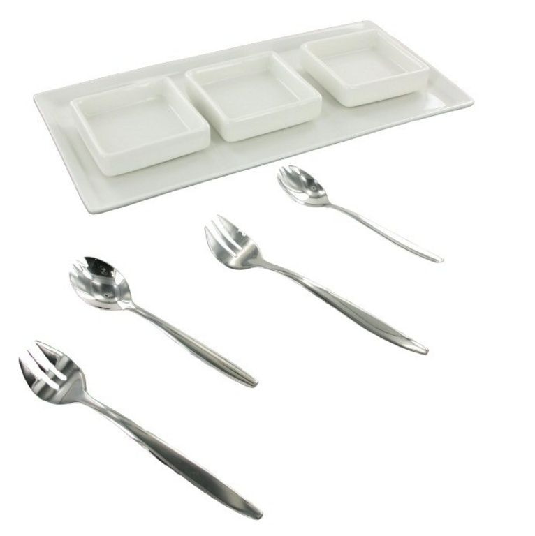 Grote plaat met 3 kleine schaaltjes er op.