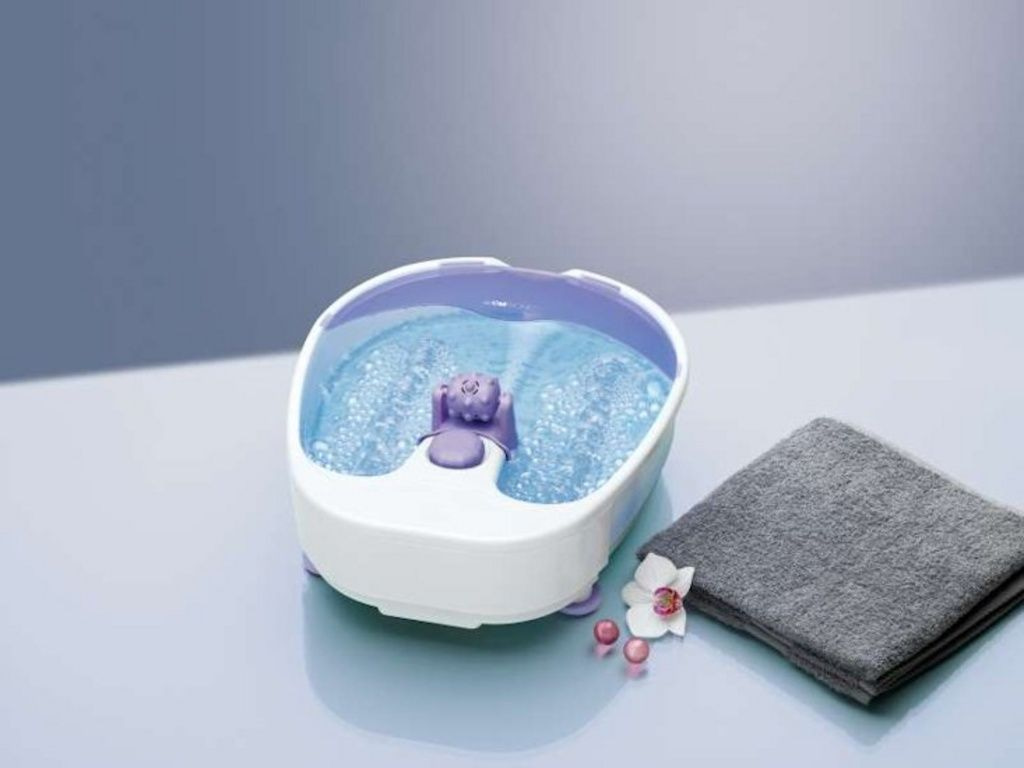 Clatronic FM 3389 voetmassage, een whirlpool effect van intense, verwarmd en kuiltjes voetsteun, massage roller voor selectieve reflexologie. 4-standenschakelaar voor verschillende functies. EAN: 4006160631869