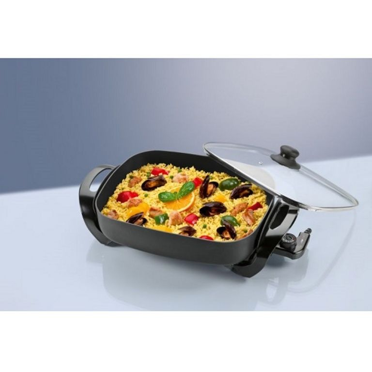 De partypan PP 3411 van Clatronic is zeer veelzijdig en kan gebruikt worden voor koken, stomen, verwarmen, ontdooien en roosteren. Met deze pan kunt u snel uw voedsel verwarmen en warm houden. De handgrepen zijn geïsoleerd en de glazen deksel is ook hittebestendig.