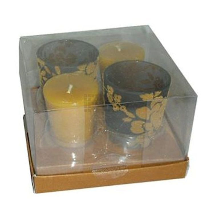 Deze set bestaat uit: 2 x waxinehouders en 2 x waxinekaarsen.