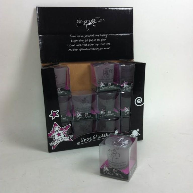 Shotglazen afzonderlijk verpakt in giftbox verpakking.