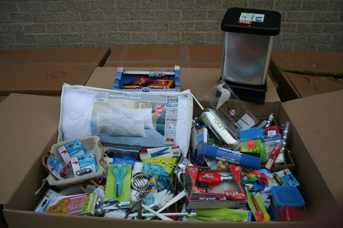 Al deze artikelen zijn gemixt in een palletdoos van: 120 x 80 x 90 Cm.