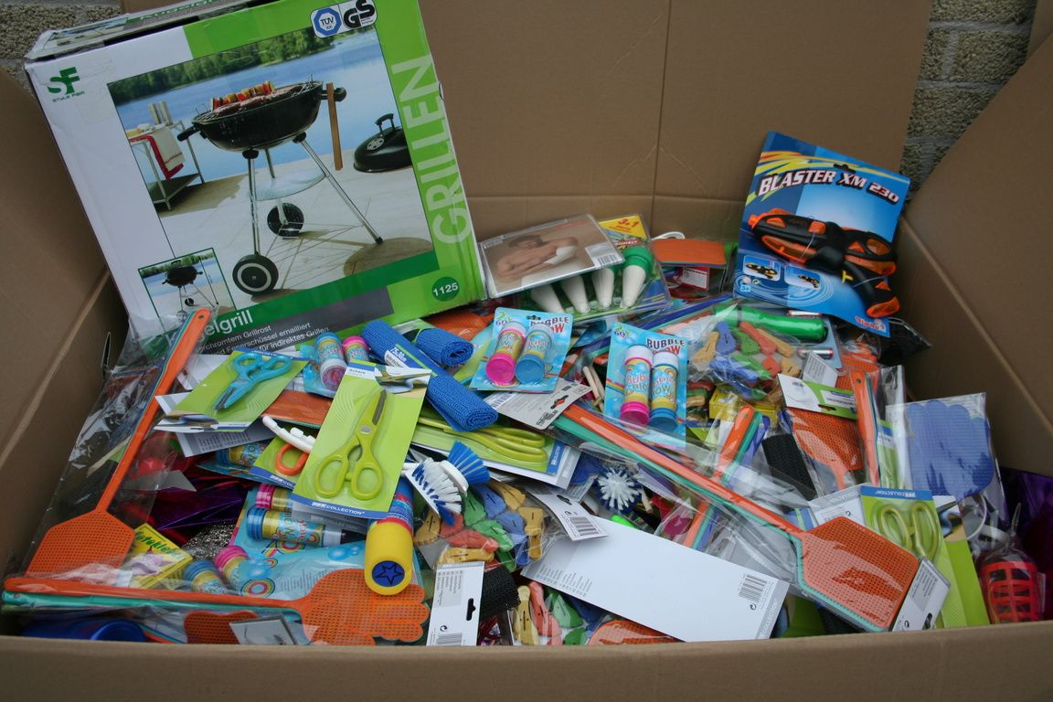 Al deze artikelen zijn gemixt in een palletdoos van: 120 x 80 x 90 Cm.