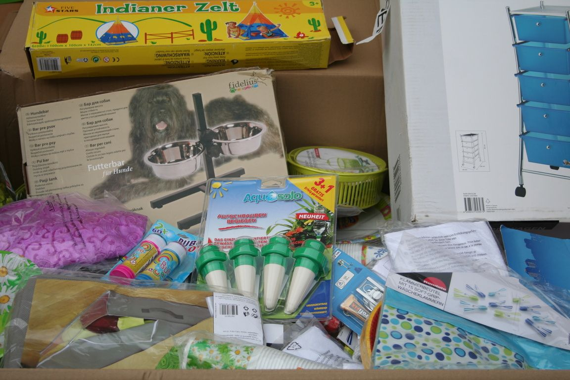 Al deze artikelen zijn gemixt in een palletdoos van: 120 x 80 x 90 Cm.