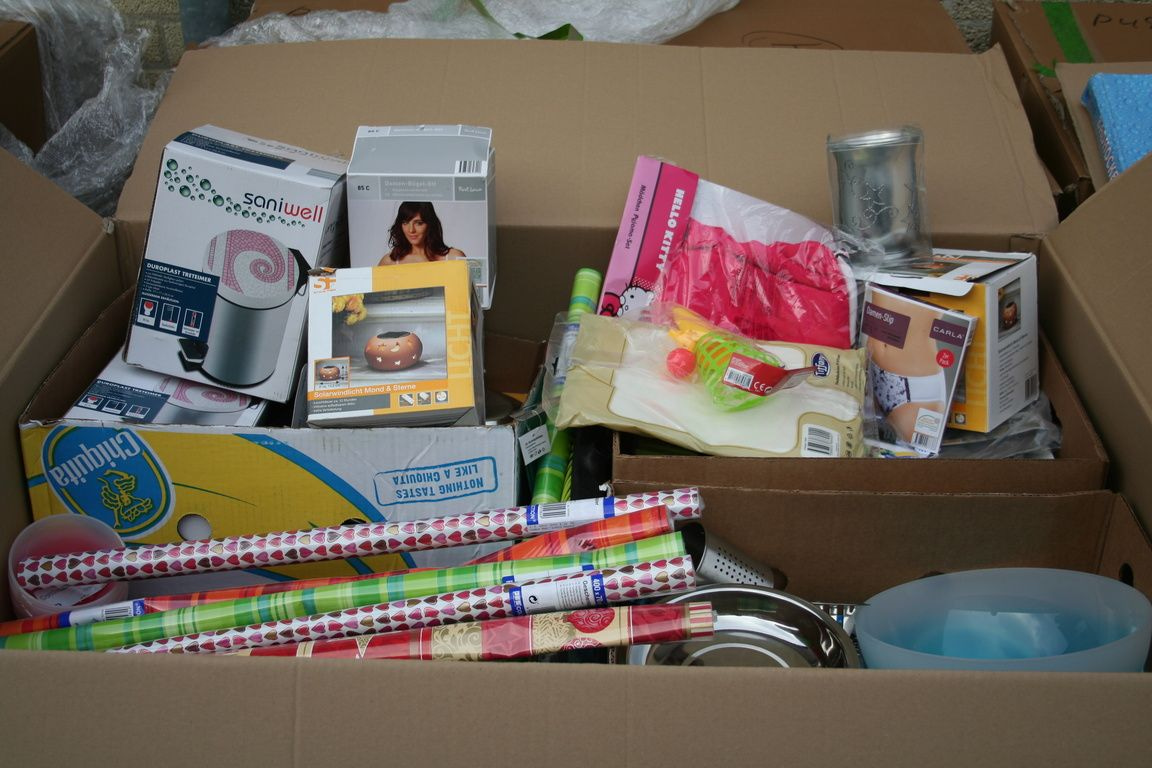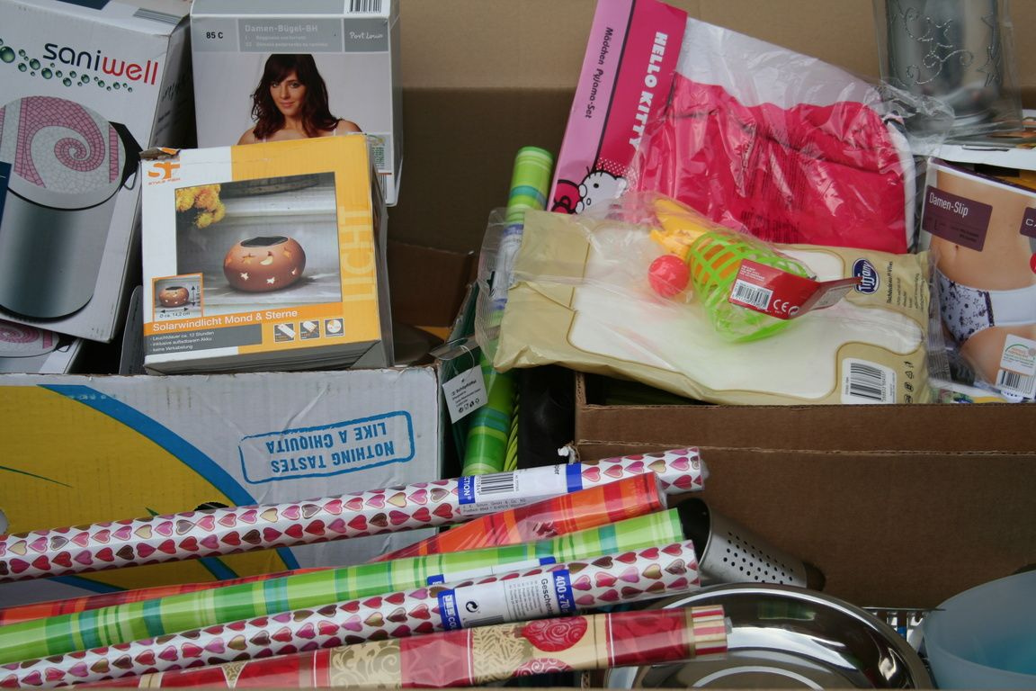 Al deze artikelen zijn gemixt in een palletdoos van: 120 x 80 x 90 Cm.