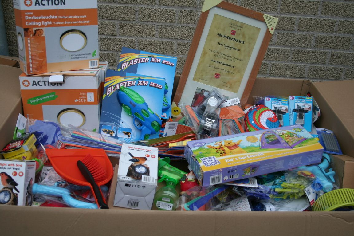 Al deze artikelen zijn gemixt in een palletdoos van: 120 x 80 x 90 Cm.