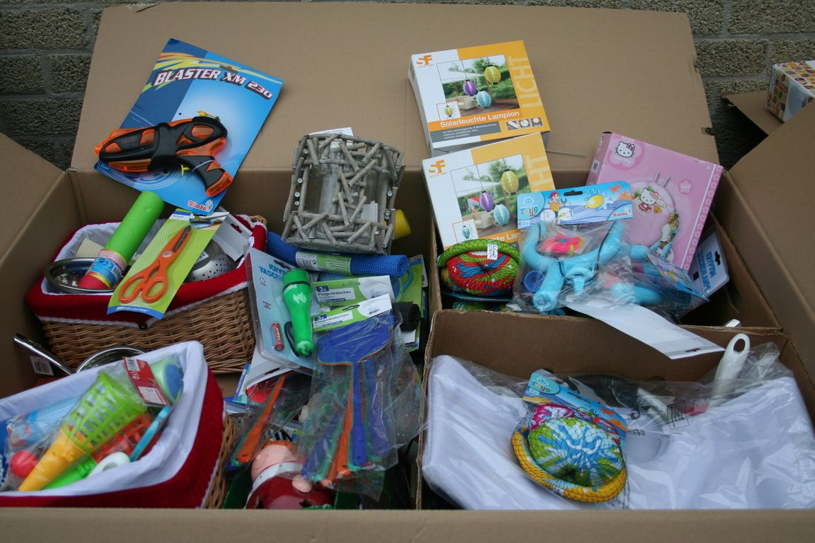 Al deze artikelen zijn gemixt in een palletdoos van: 120 x 80 x 90 Cm.