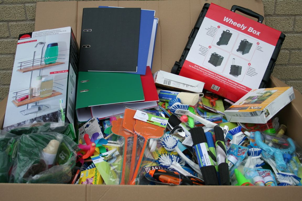 Al deze artikelen zijn gemixt in een palletdoos van: 120 x 80 x 90 Cm.