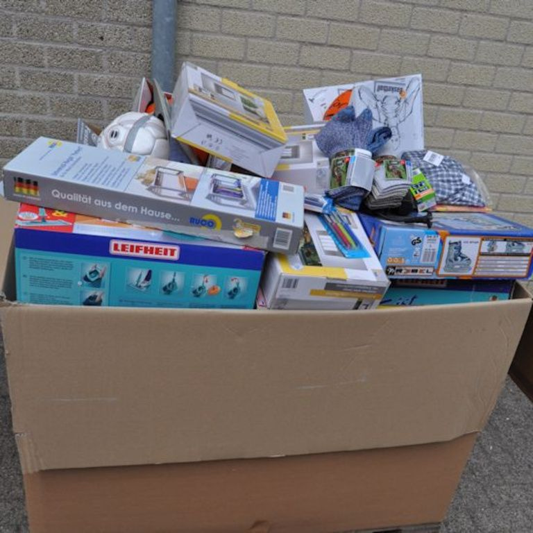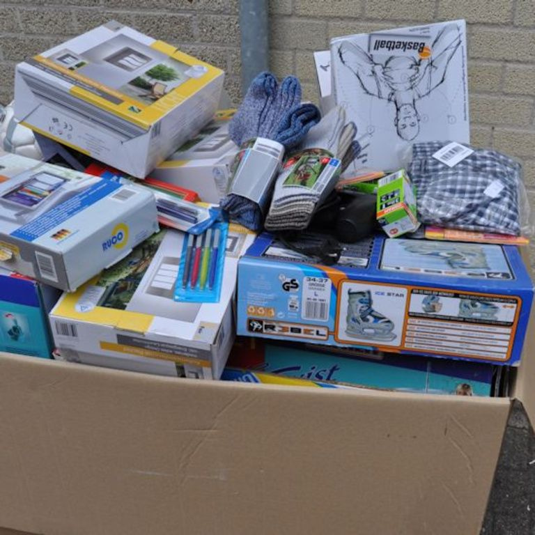 Al deze artikelen zijn gemixt in een palletdoos van: 120 x 80 x 90 Cm.
