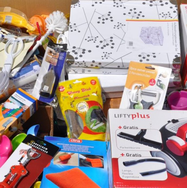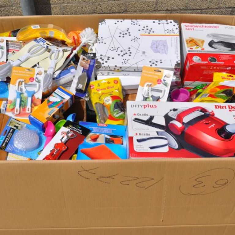 Deze palletdoos bevat: O.a. Huishoudelijke artikelen, Speelgoed, Gereedschap, Kantoor artikelen etc.