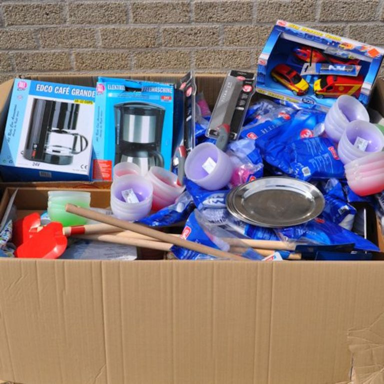 Deze palletdoos bevat: O.a. Huishoudelijke artikelen, Speelgoed, Gereedschap, Kantoor artikelen etc.