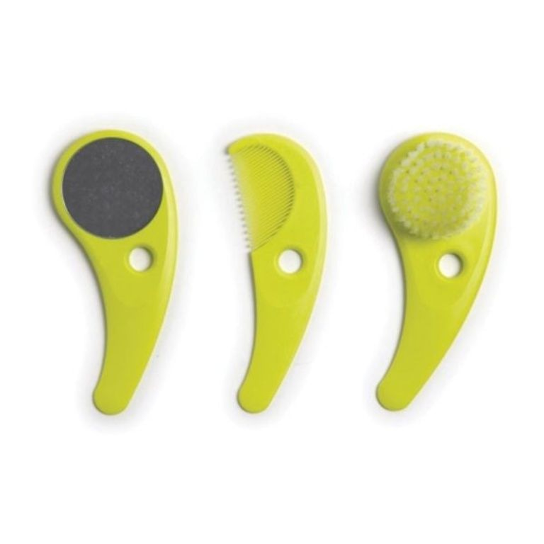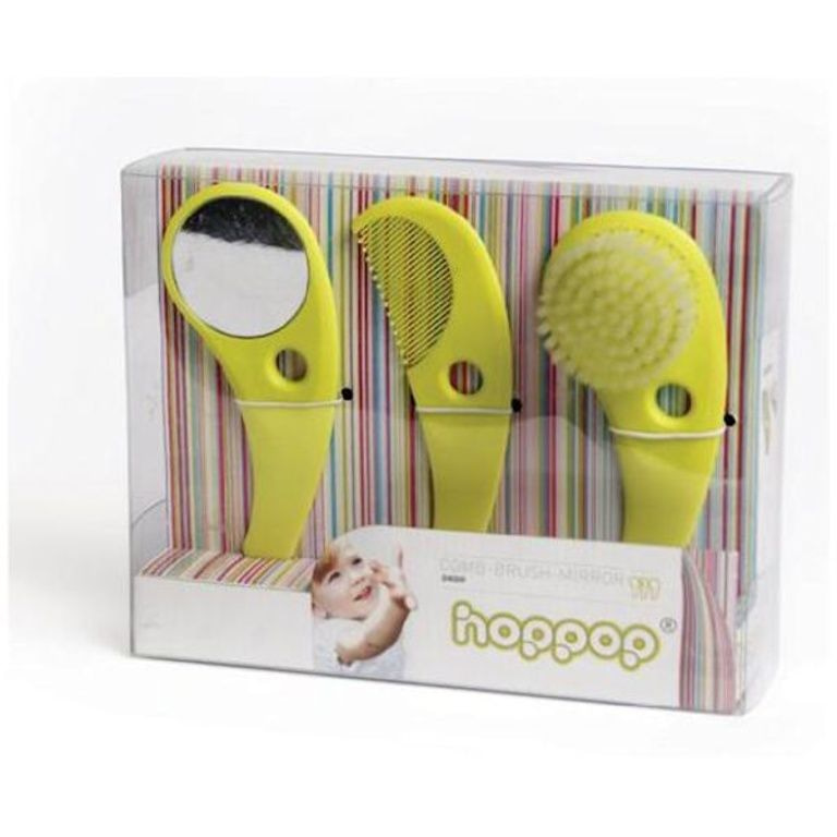 Deze leuke Zazo borstelset van Hoppop bestaat uit een kam, zachte borstel en een spiegeltje. De borstel is extreem zacht, de kam heeft geen scherpe punten, en de spiegel is vrijwel onbreekbaar.