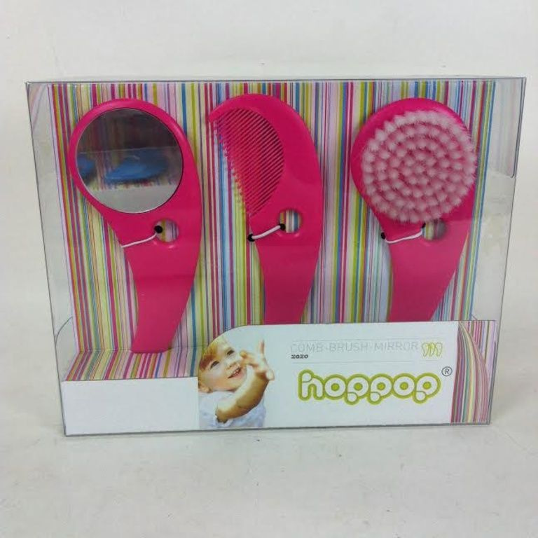 Deze leuke Zazo borstelset van Hoppop bestaat uit een kam, zachte borstel en een spiegeltje. De borstel is extreem zacht, de kam heeft geen scherpe punten, en de spiegel is vrijwel onbreekbaar.