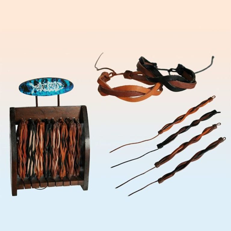 Elke display bevat 96 stuks en 8 verschillende soorten lederen gevlochten armbanden.