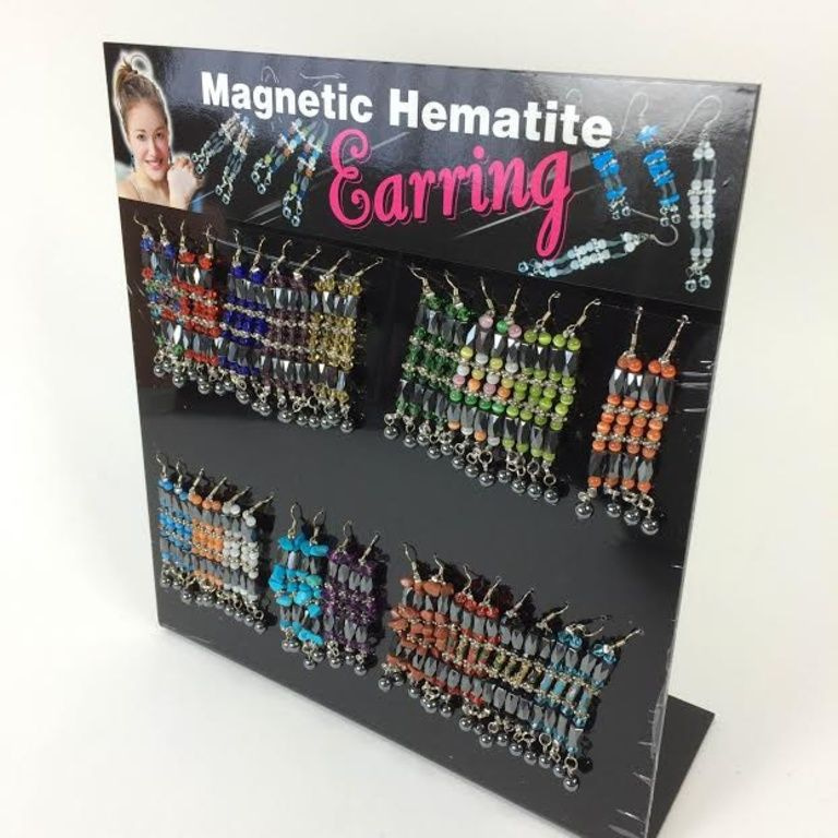 18 paar verschillende soorten Hematiet Magnetische Oorbellen per Display.