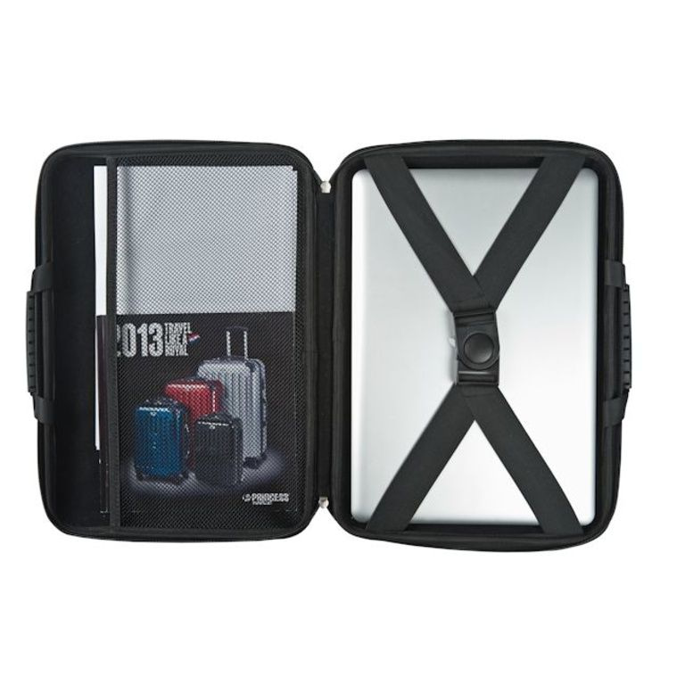 De hoes beschikt aan de binnenkant over een sluitbare gesp om de laptop op zijn plek te houden.