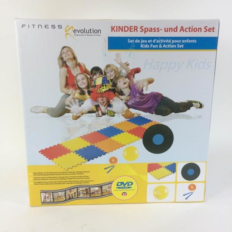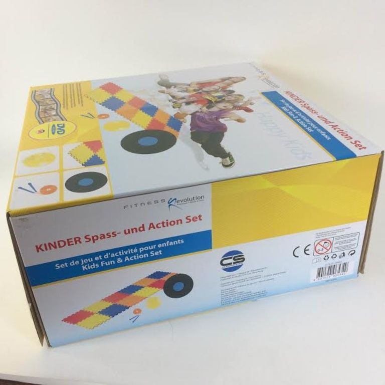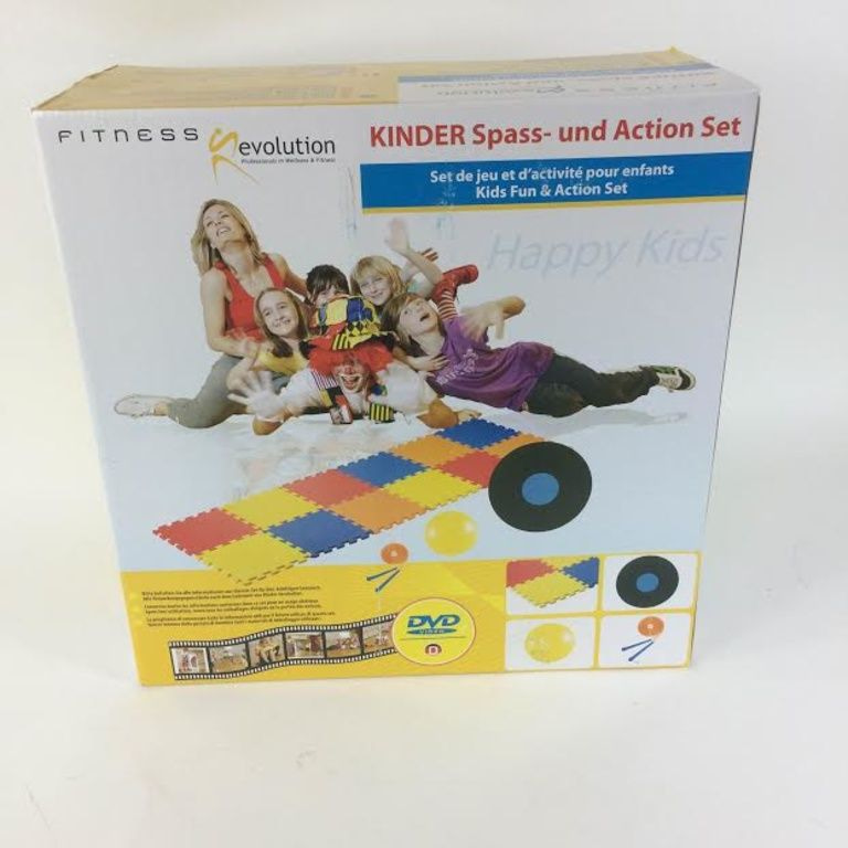 Deze Kinder Fitness set bestaat: uit een puzzel-mat, springtouw, balanceboard en een mini pilates bal.