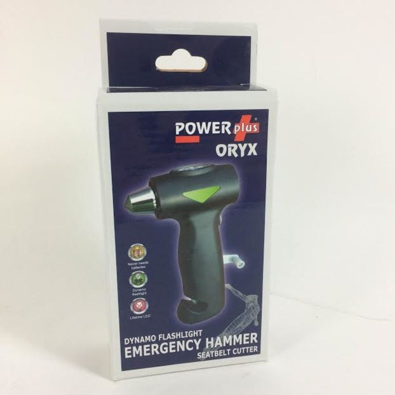 Met de 3 in 1 Oryx noodhamer heeft u een noodhamer, dynamo zaklamp en gordelsnijder in één, voor extra veiligheid in uw auto.