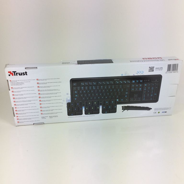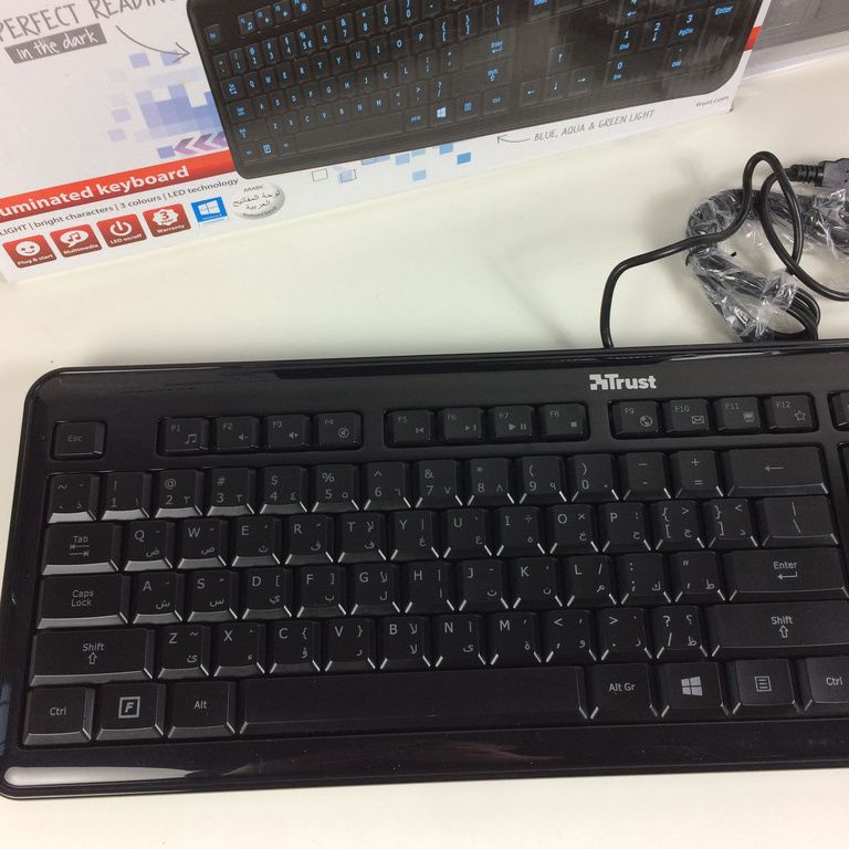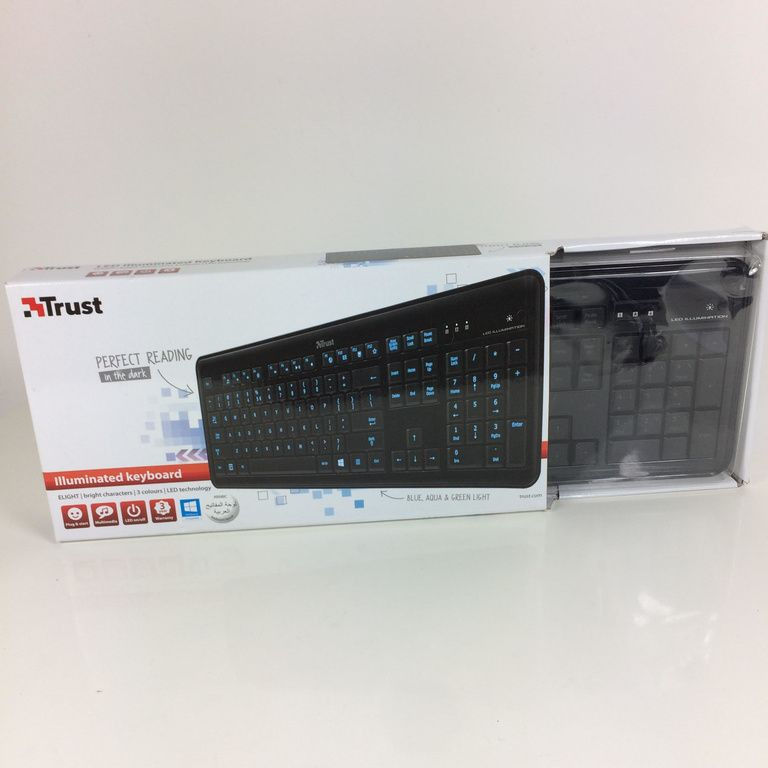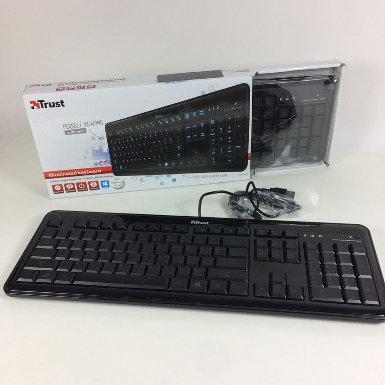 Toetsenbord met heldere, LED-verlichte tekens op de toetsen, perfect leesbaar in het donker