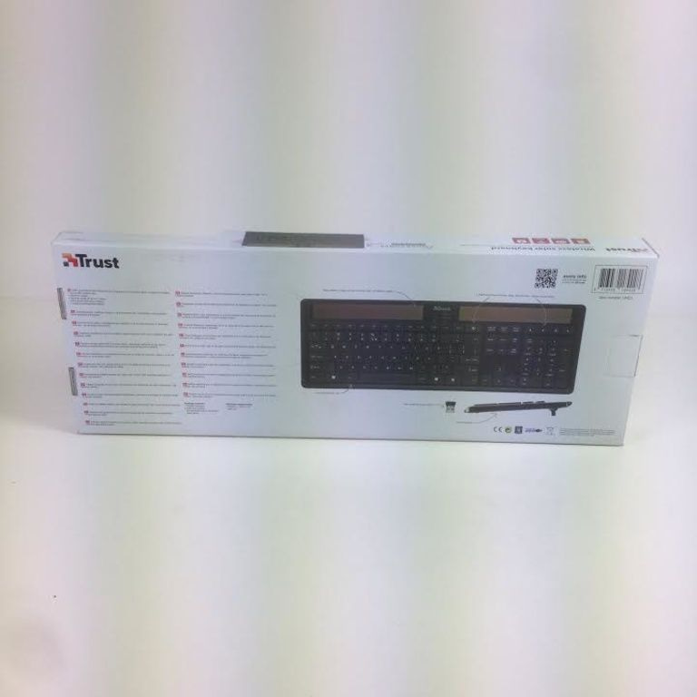 Draadloos toetsenbord met zonnecellen; opladen gebeurt door zon- of daglicht, dus geen batterijen benodigd.
