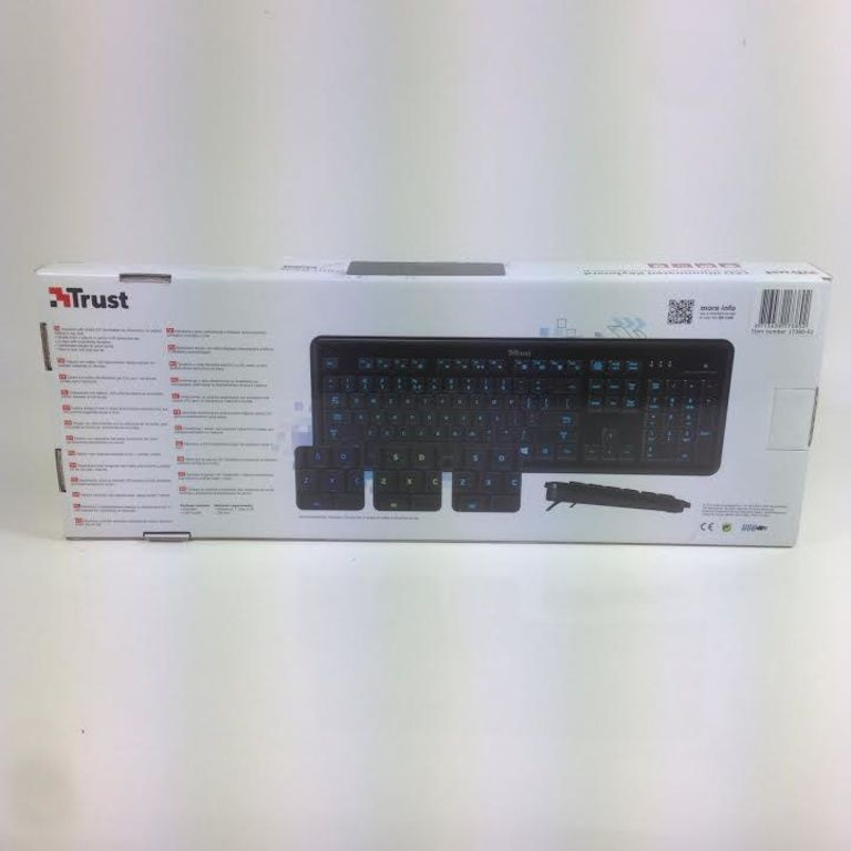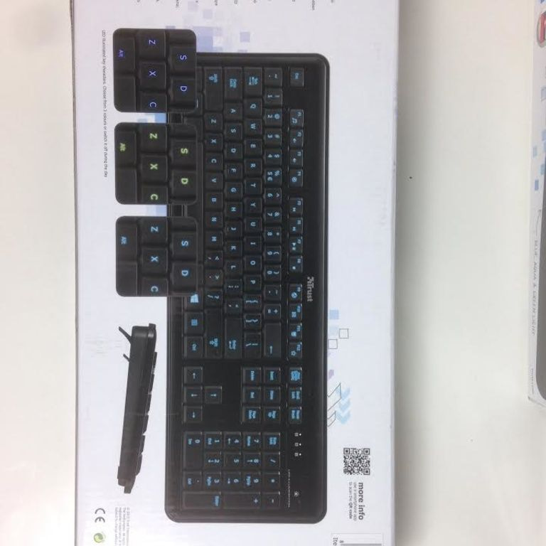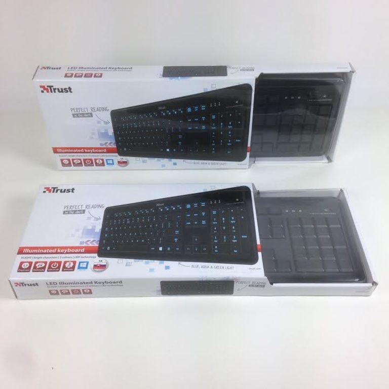Toetsenbord met heldere, LED-verlichte tekens op de toetsen, perfect leesbaar in het donker.