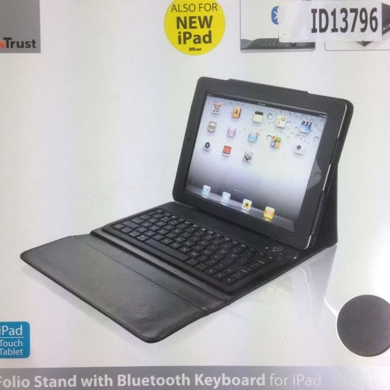 Stijlvolle foliohoes van kunstleer met geïntegreerde standaard en Bluetooth-toetsenbord voor uw iPad & iPad2.