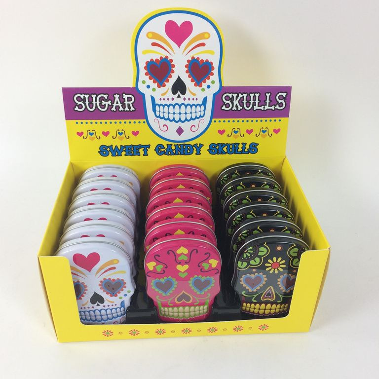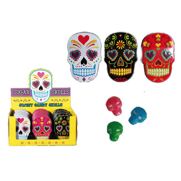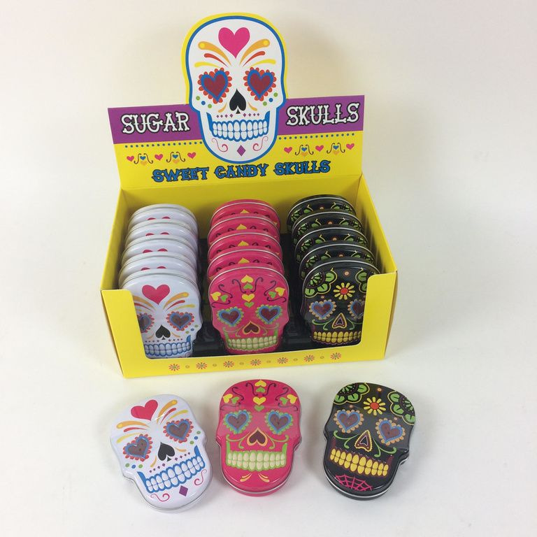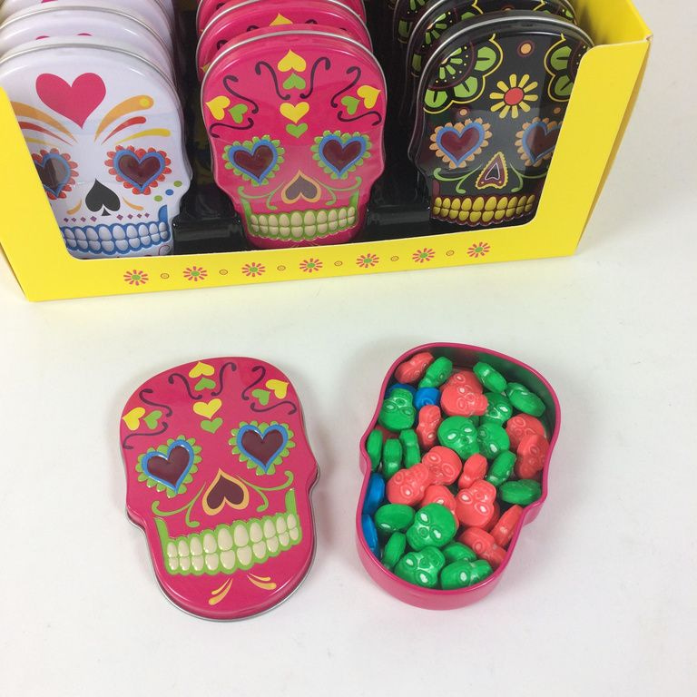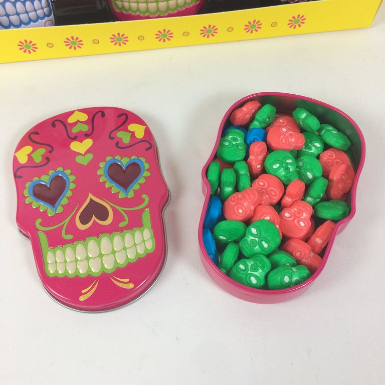 Sweet candy skulls snoep verpakt in een metalen blik.