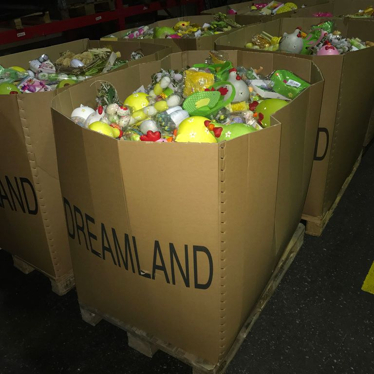 Al deze artikelen zijn gemixt in een palletdoos van: 120 x 80 x 160 Cm.