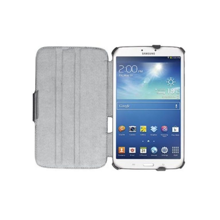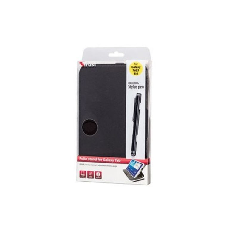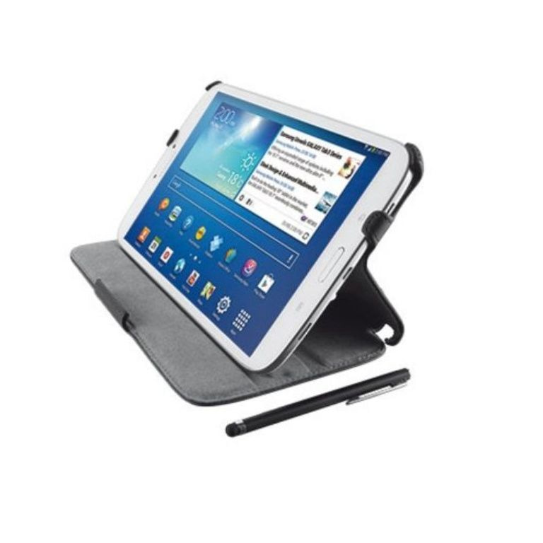 Elegante beschermende folio case voor Galaxy Tab 3 8.0 met stylus-pen en geïntegreerde kijkstandaard.