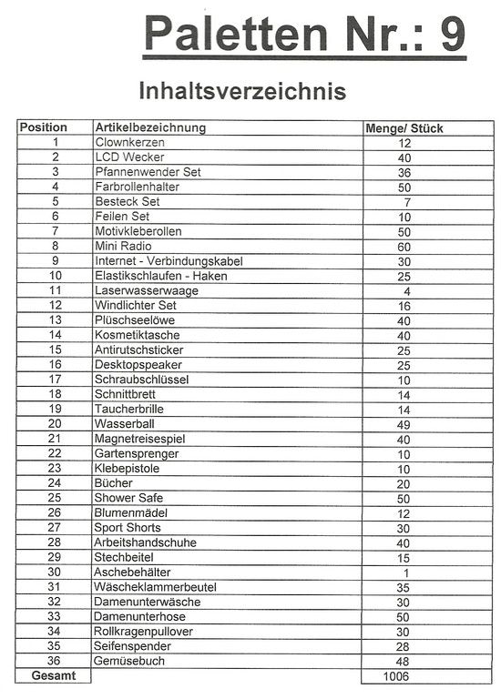 Inhoud pallet: 1.006 St. diverse artikelen !