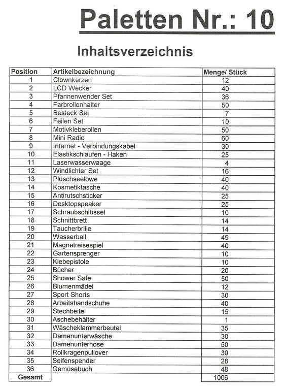 Inhoud pallet: 1.006 St. diverse artikelen !