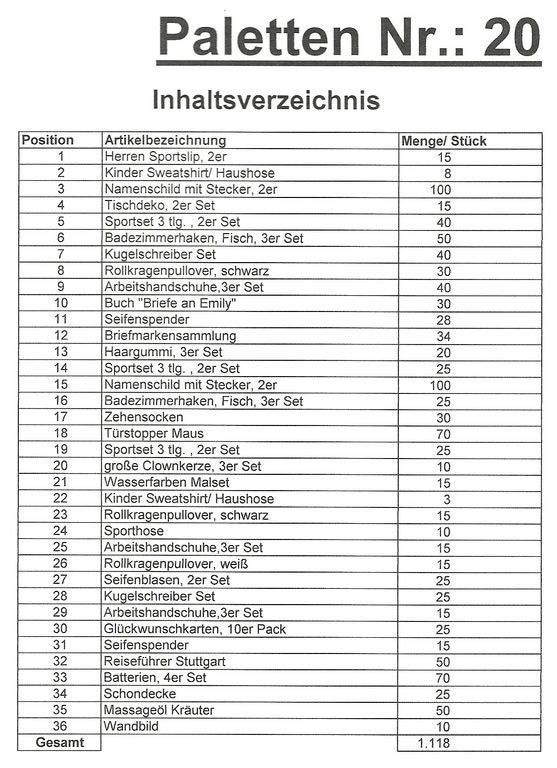 Inhoud pallet: 1.118 St. diverse artikelen !