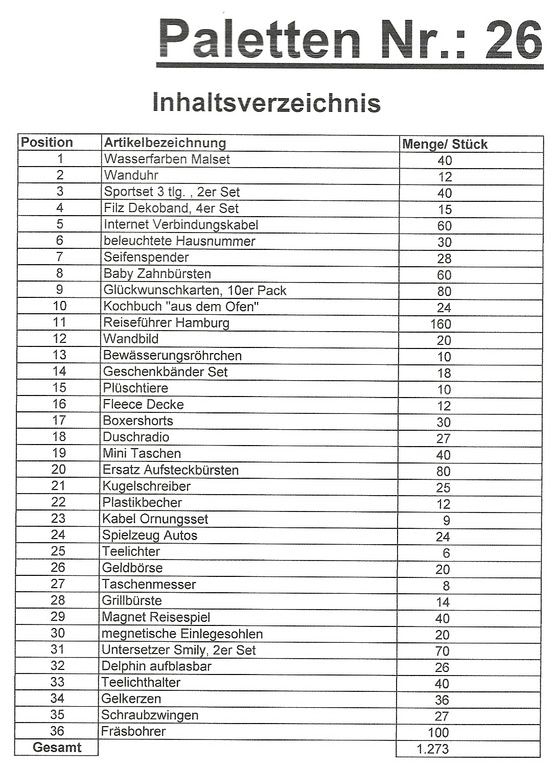 Inhoud pallet: 1.273 St. diverse artikelen !