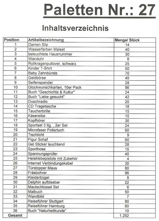 Inhoud pallet: 1.252 St. diverse artikelen !