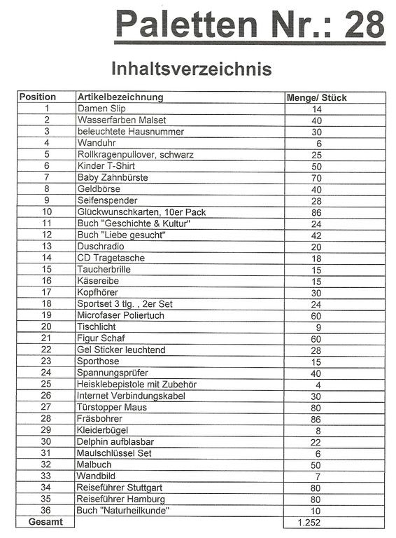 Inhoud pallet: 1.252 St. diverse artikelen !