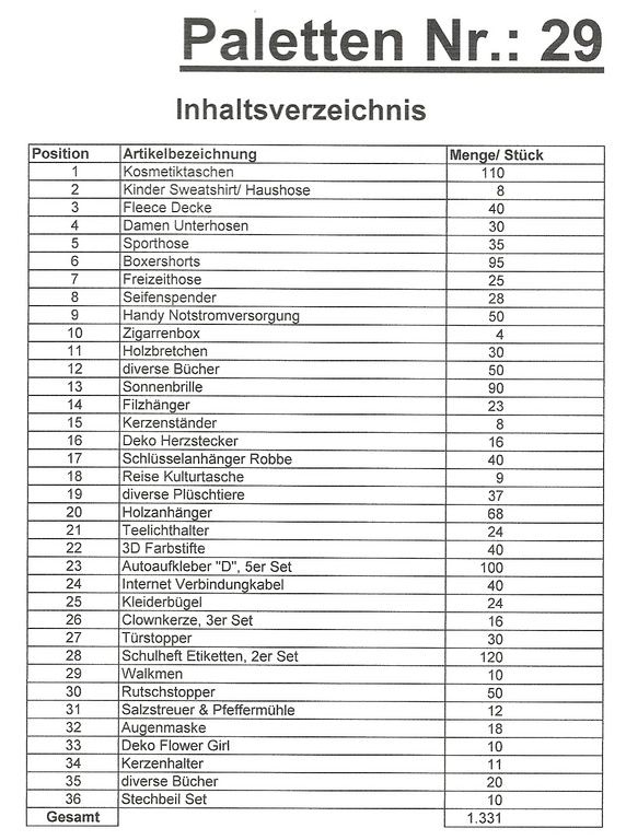 Inhoud pallet: 1.331 St. diverse artikelen !