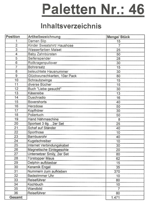 Inhoud pallet: 1.471 St. diverse artikelen !