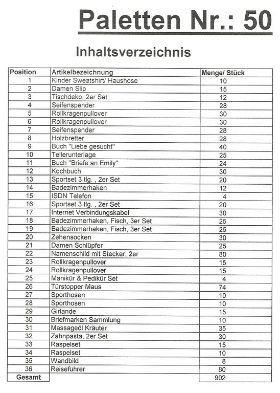 Inhoud pallet: 902 St. diverse artikelen !
