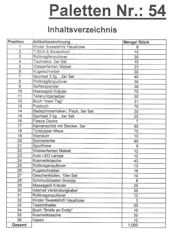 Inhoud pallet: 1.000 St. diverse artikelen !