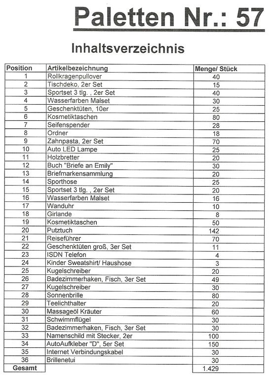Inhoud pallet: 1.429 St. diverse artikelen !