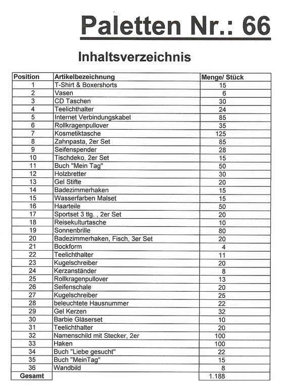 Inhoud pallet: 1.188 St. diverse artikelen !