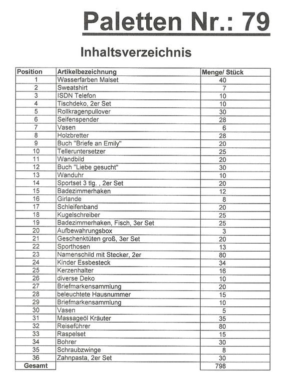 Inhoud pallet: 798 St. diverse artikelen !