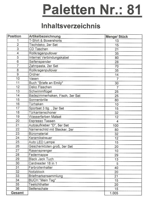 Inhoud pallet: 1.005 St. diverse artikelen !