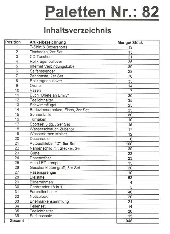 Inhoud pallet: 1.046 St. diverse artikelen !