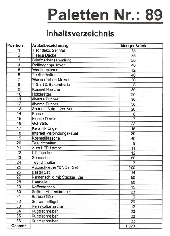 Inhoud pallet: 1.073 St. diverse artikelen !