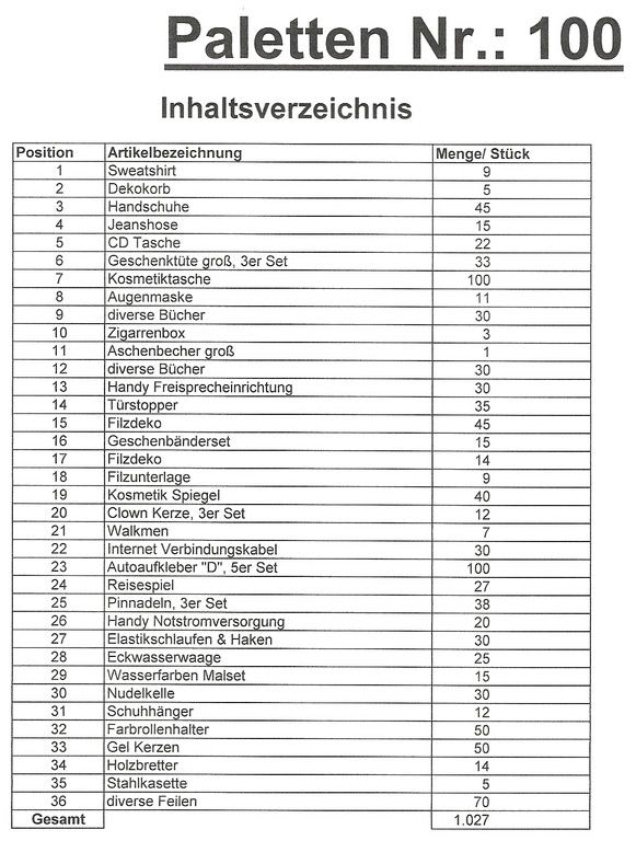 Inhoud pallet: 1.027 St. diverse artikelen !
