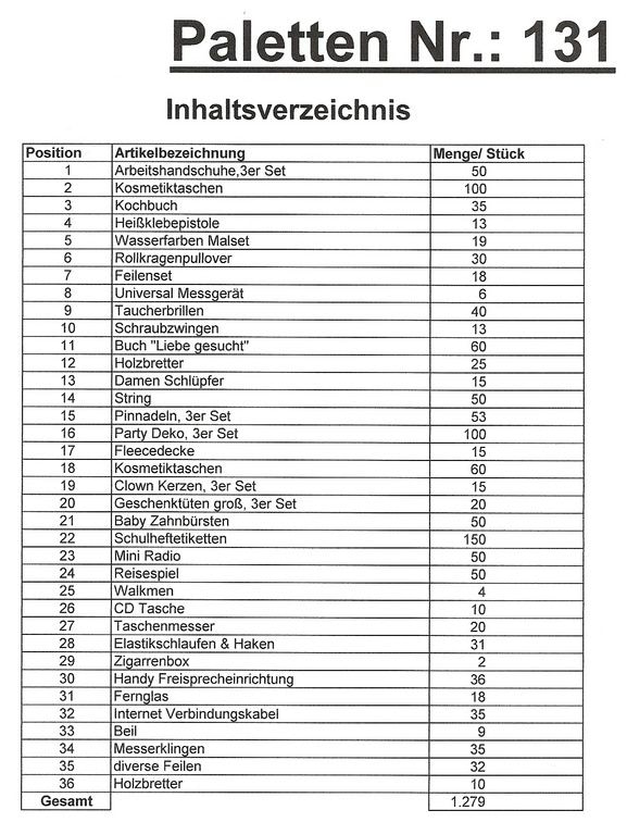 Inhoud pallet: 1.279 St. diverse artikelen !