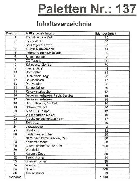 Inhoud pallet: 1.140 St. diverse artikelen !