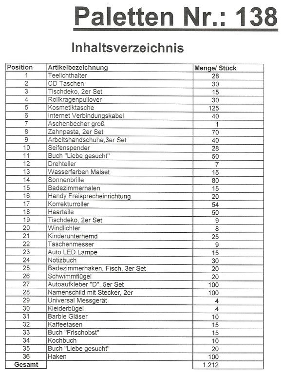 Inhoud pallet: 1.212 St. diverse artikelen !